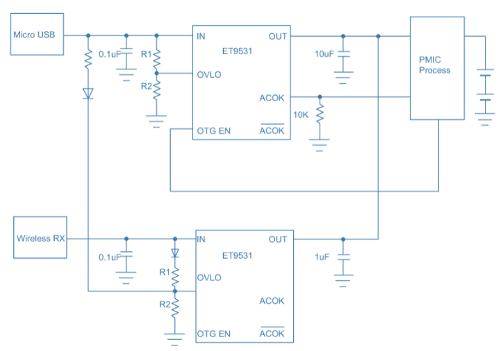 (3)OVP: ET9552:低內阻30mΩ,快速過壓關斷50ns,內置100V浪涌管。