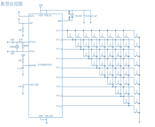 3.最大支持44個(gè)外部按鍵,其中可選10個(gè)作為紅外學(xué)習(xí)按鍵
